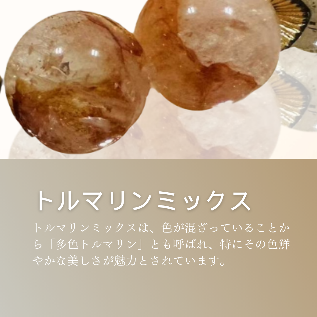 トルマリンミックスは、色が混ざっていることから「多色トルマリン」とも呼ばれ、特にその色鮮やかな美しさが魅力とされています。